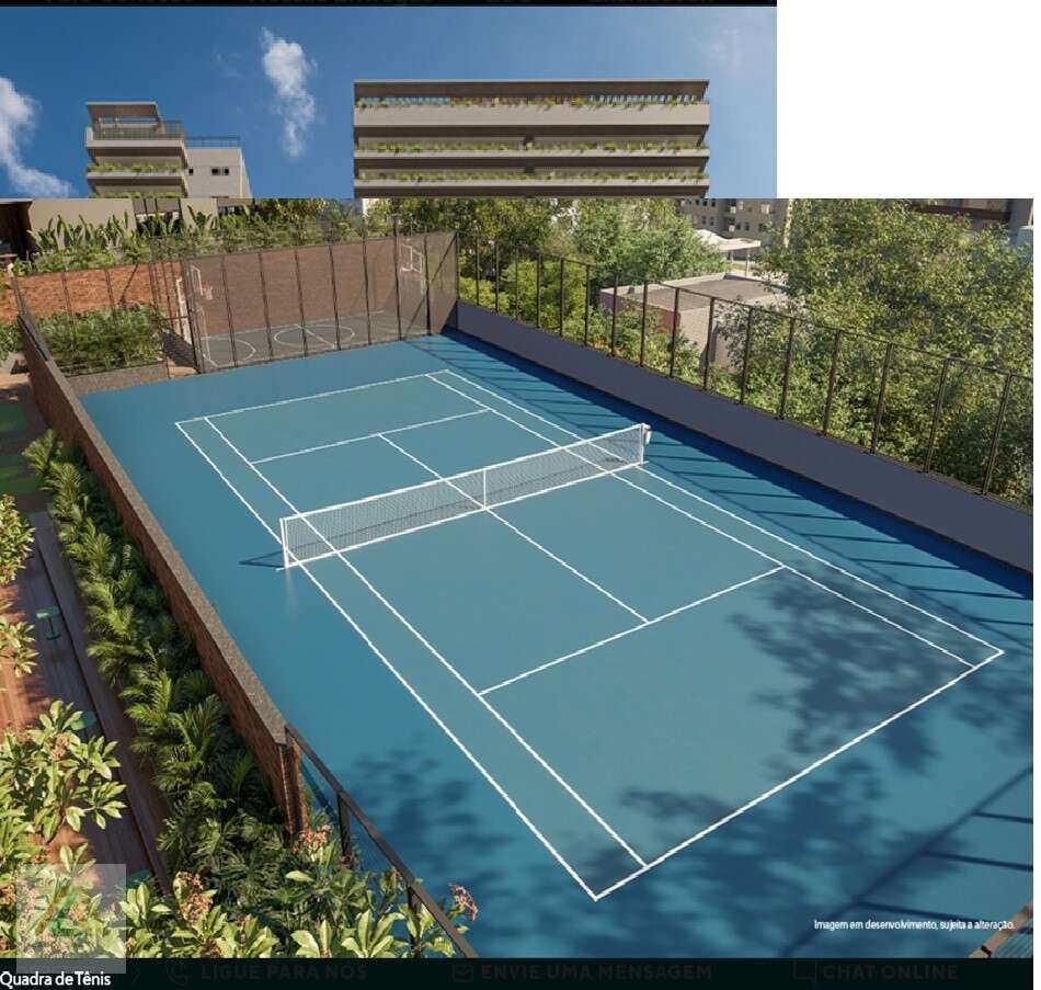 Quadra de tênis, Piscina coberta com raia de 25 metros, Spa, Sauna seca, Sala de massagem, Piscina adulto e infantil, Academia, Salão de festas com terraço, Quadra de jogos, Playground, Brinquedoteca